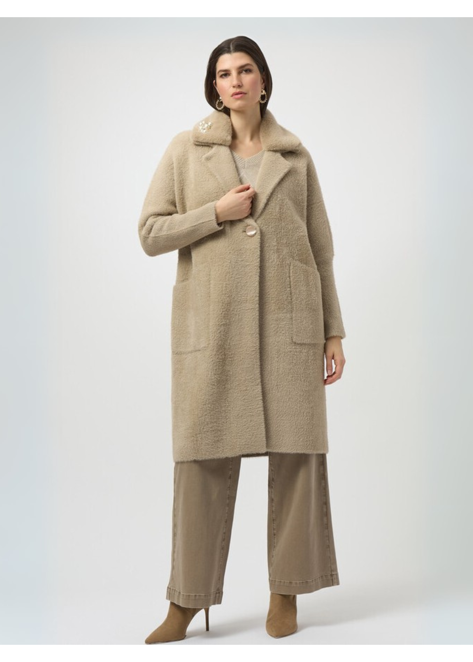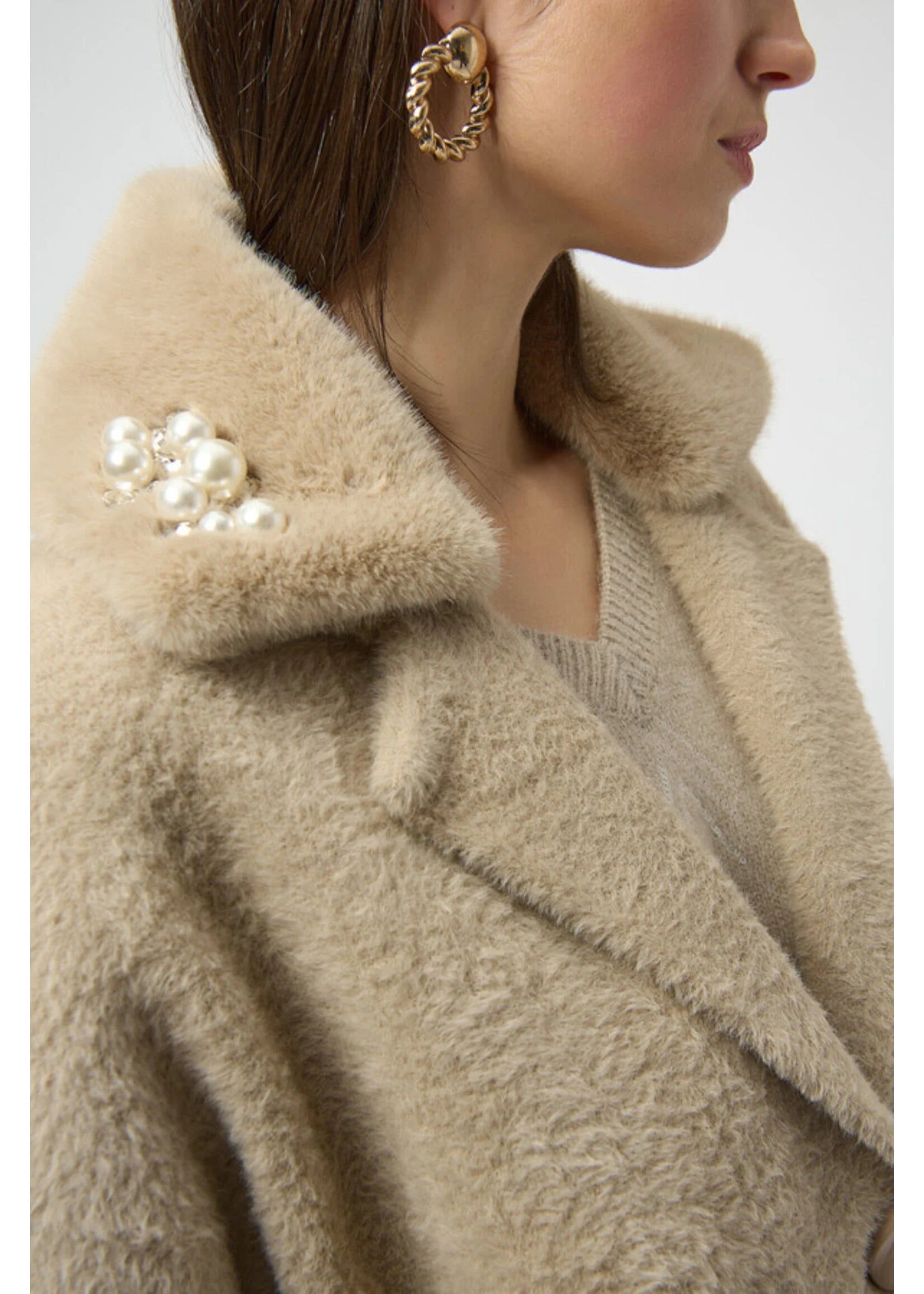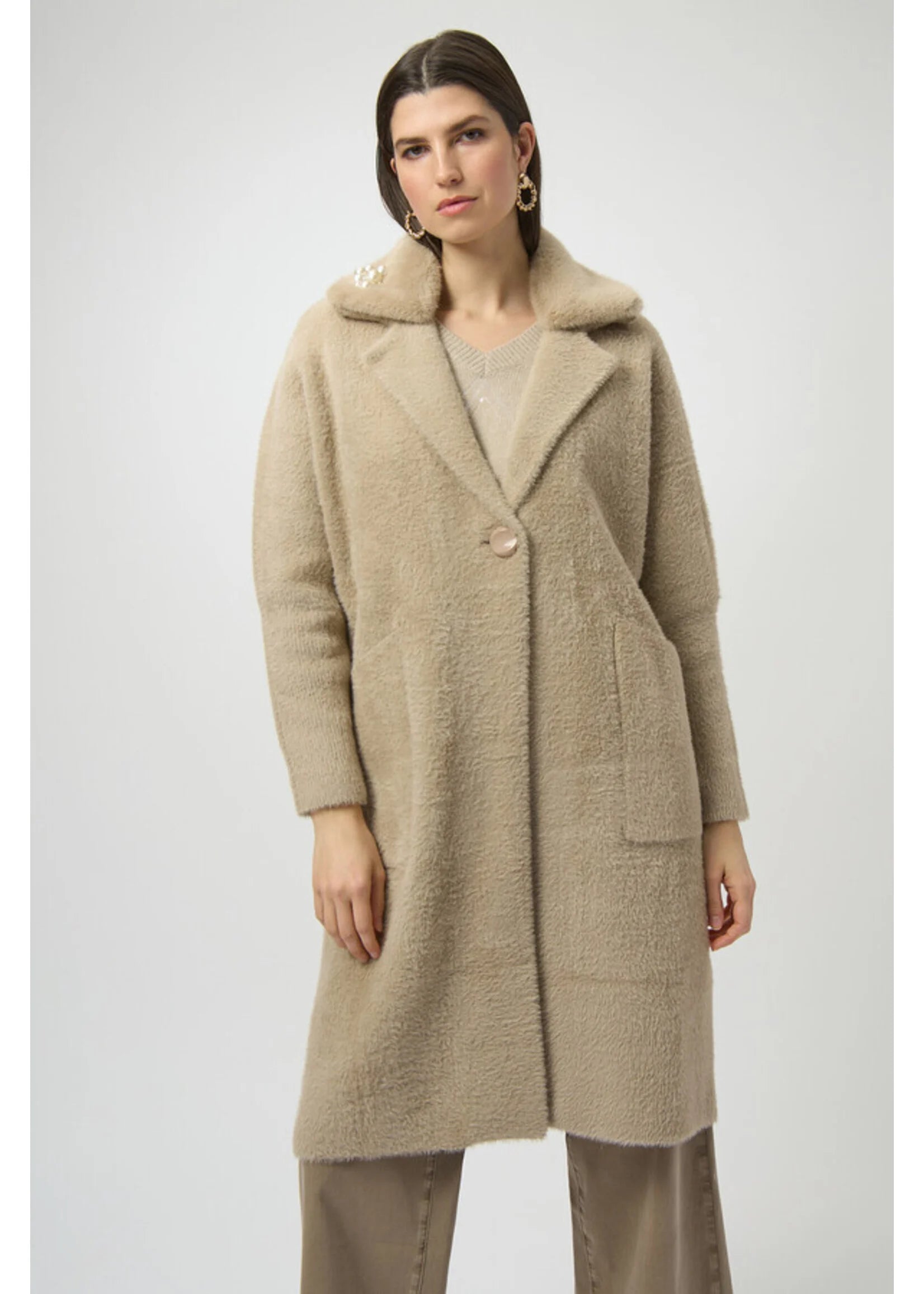 Joseph Ribkoff Feather Yarn and Faux Fur Sweater Coat