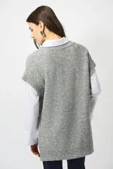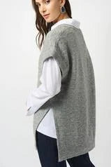 Our long-line sleeveless tunic is the epitome of masterful layering. Made from a soft sweater knit that provides just the right amount of warmth, this piece redefines cozy-chic with its flattering V-shaped neckline and subtle sequin detailing. Pair it with a crisp white button-down for a polished, office-ready look, or layer it over a simple top for effortless style.