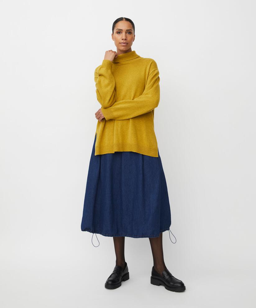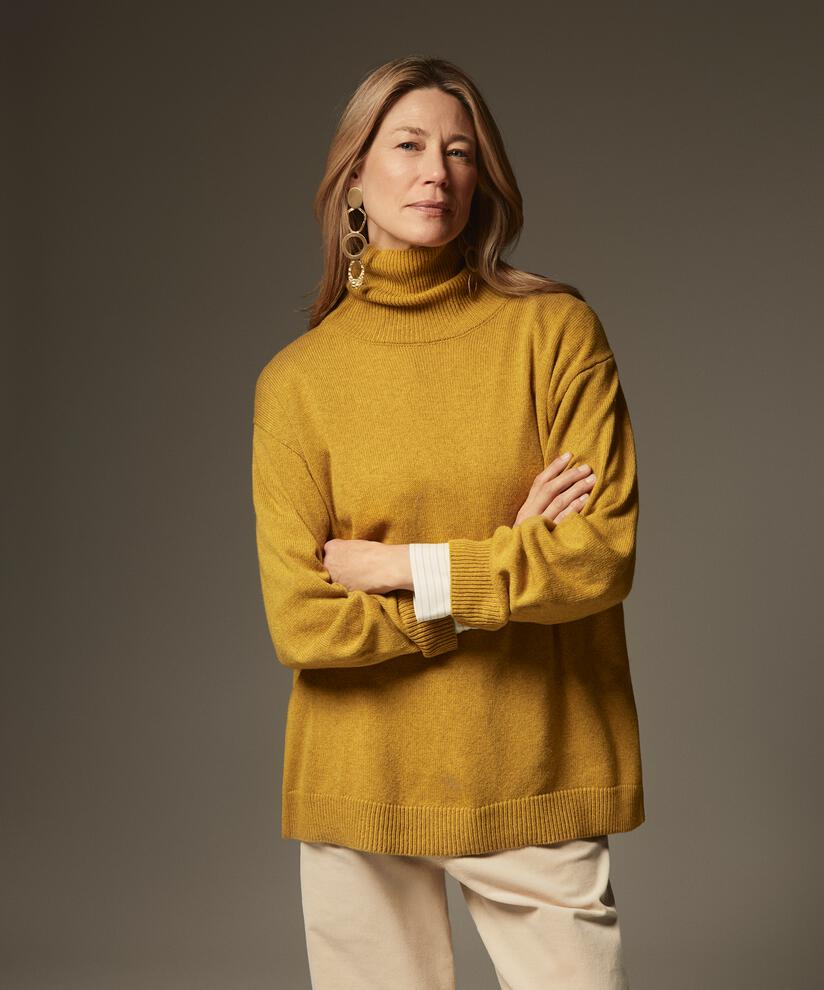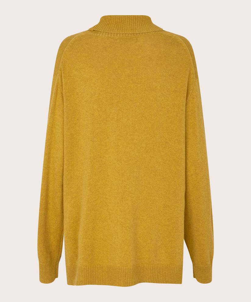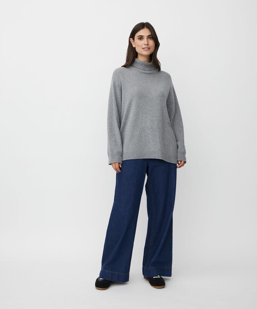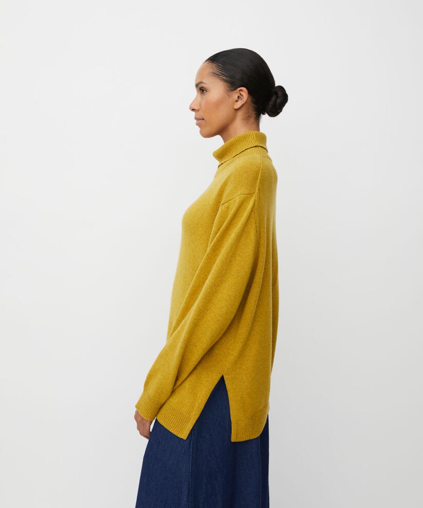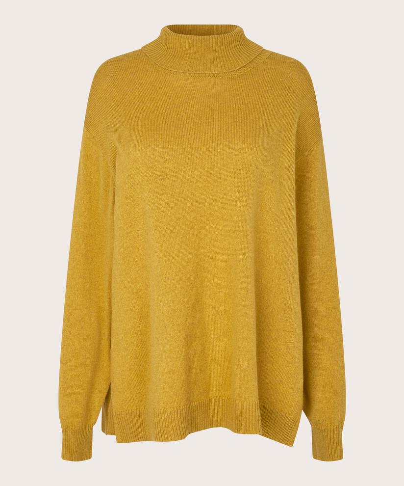 This simple knit is perfect for those days when you want your clothes to be soft, comfortable, and stylish. It is knitted in a lovely, soft fabric and features a classic cut with ample volume and freedom of movement. At the same time, it is elegant and feminine with its roll collar, long sleeves, and slits at the sides. Wear it with simple trousers for an effortlessly stylish look.
