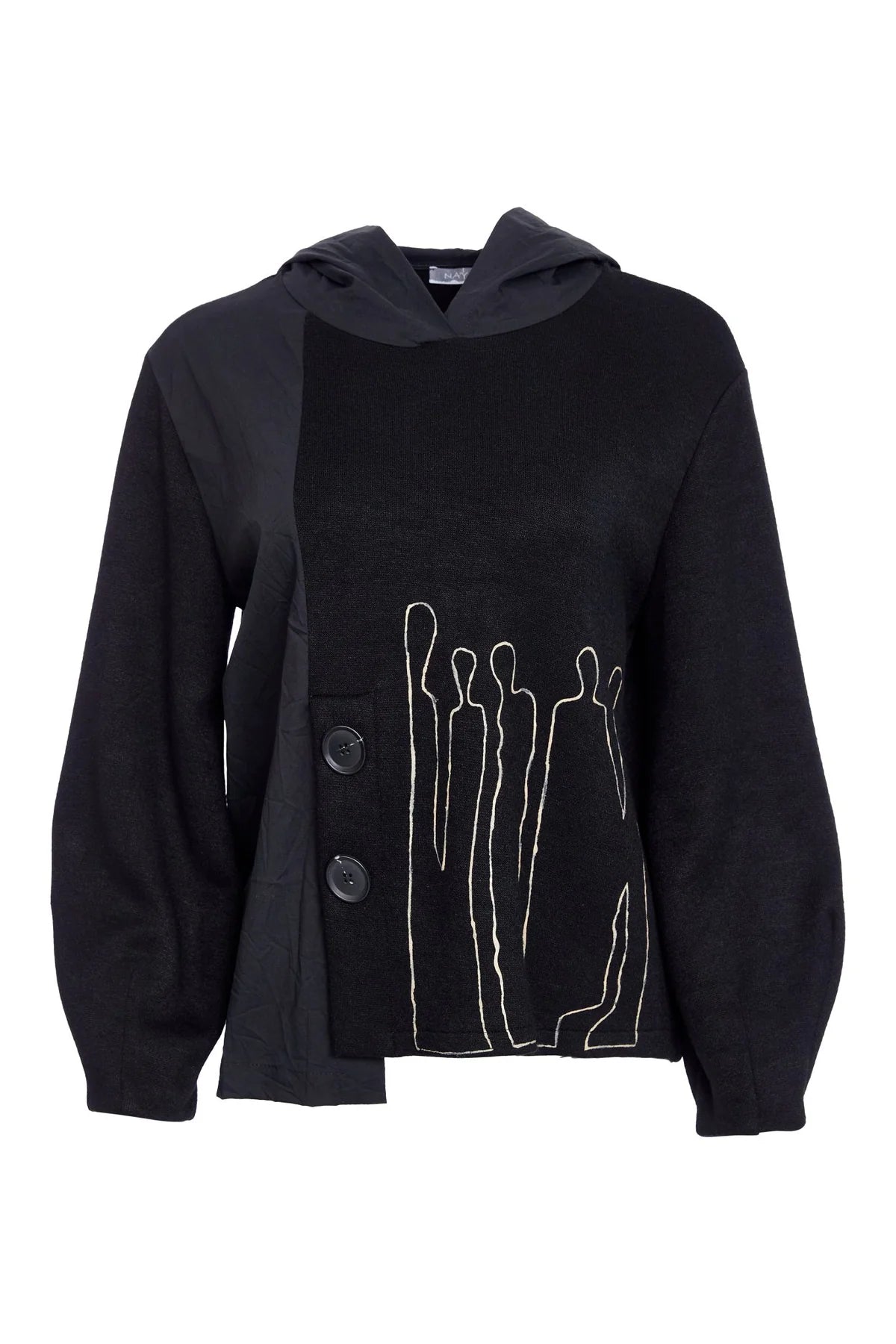 Naya Black Print Hooded Sweater